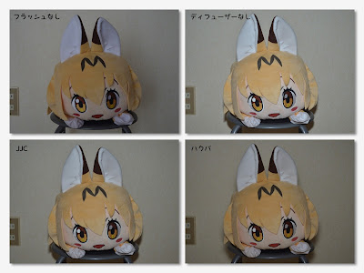 2枚目「ディフューザーなし」に対して、3枚目「JJC」、4枚目「ハクバ」と影が薄くなり全体の明るさが少しずつ落ちているのがわかる。